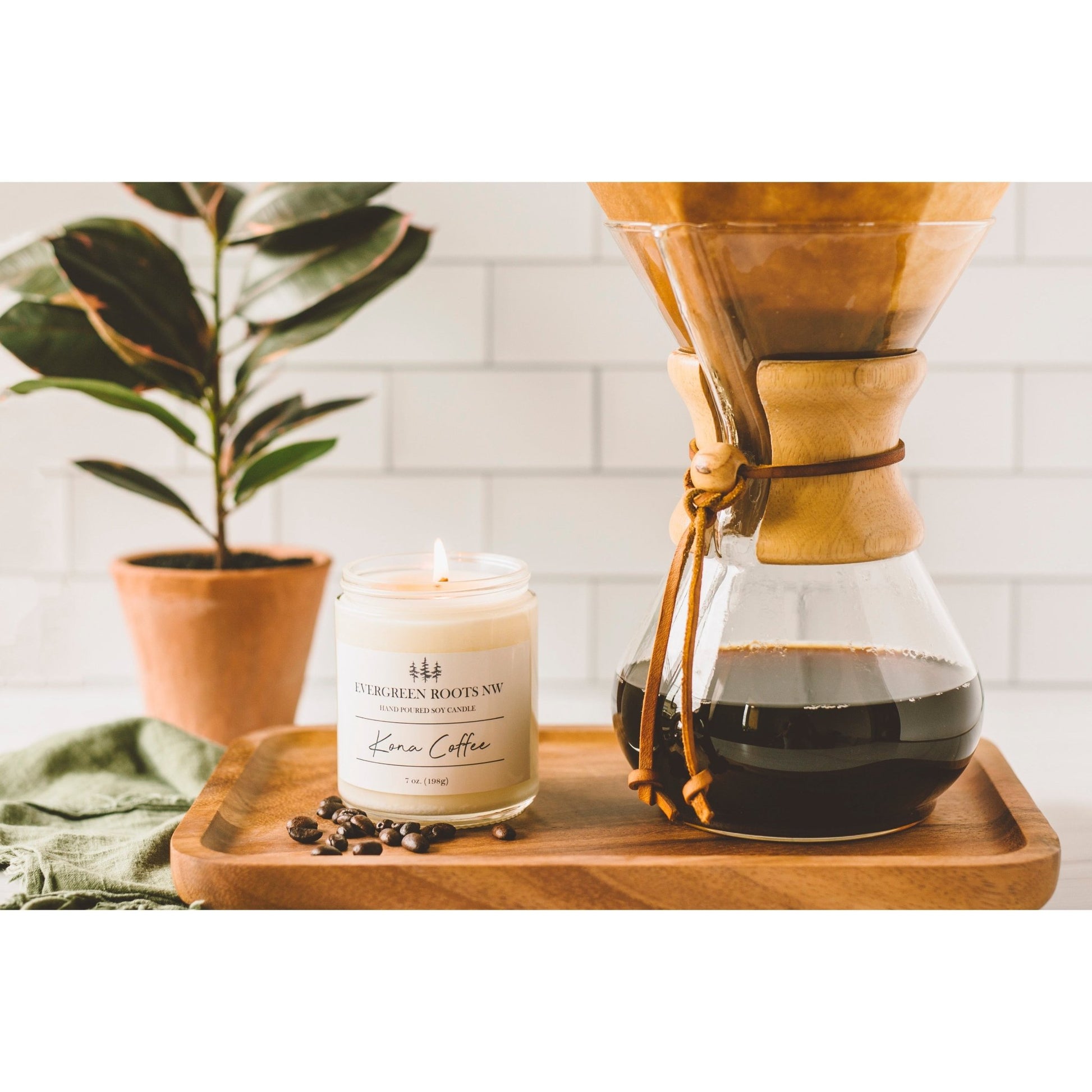 Kona coffee combines the rich dark notes of freshly ground coffee beans with the sweet scent of caramelized sugar on top of a base of creamy coconut